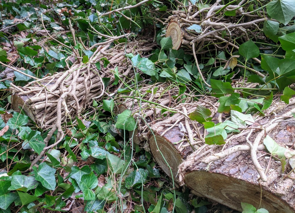 To prevent other trees from suffering the same fate, I removed vines from all other trees in the area. Knowing that even the smallest vines could eventually uproot a tree, I carefully cleared all the creeping plants.